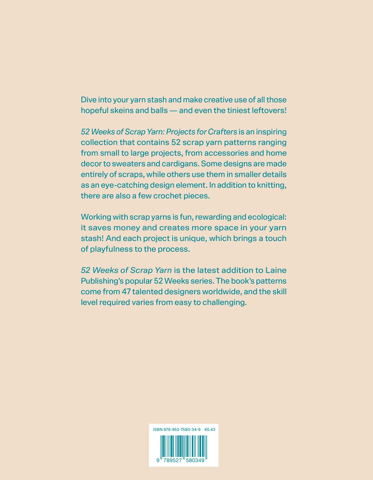 52 Weeks of Scrap Yarn is the latest addition to Laine Publishing’s popular 52 Weeks series. The book’s patterns come from 47 talented designers worldwide, and the skill level required varies from easy to challenging.