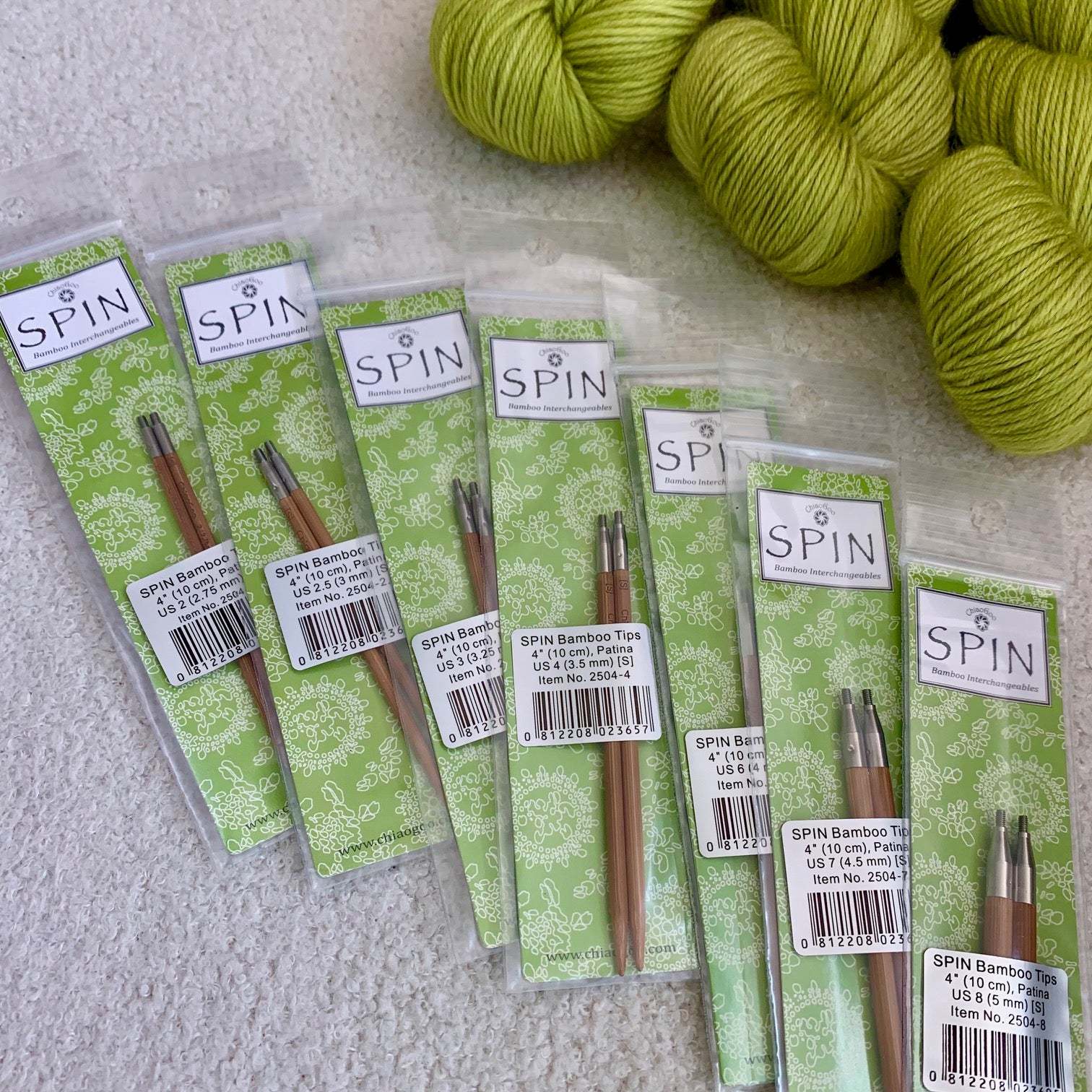 Meanwhile, the surgical stainless steel connectors allow for easy and fast connecting to your cables, so you can easily switch between tip sizes to suit your project's needs. These ChiaoGoo Spin Bamboo interchangable tips are 4inches (10cm) in length, with a varying width from 3m through to 5mm.